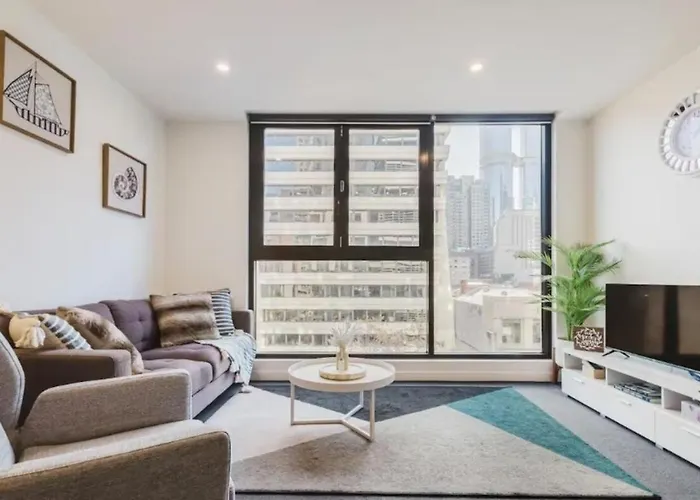 O alojamento está equipado com cozinha com forno e máquina de lavar loiça. A estação de comboios Exhibition Street/Lonsdale Street está a apenas 150 metros de distância.